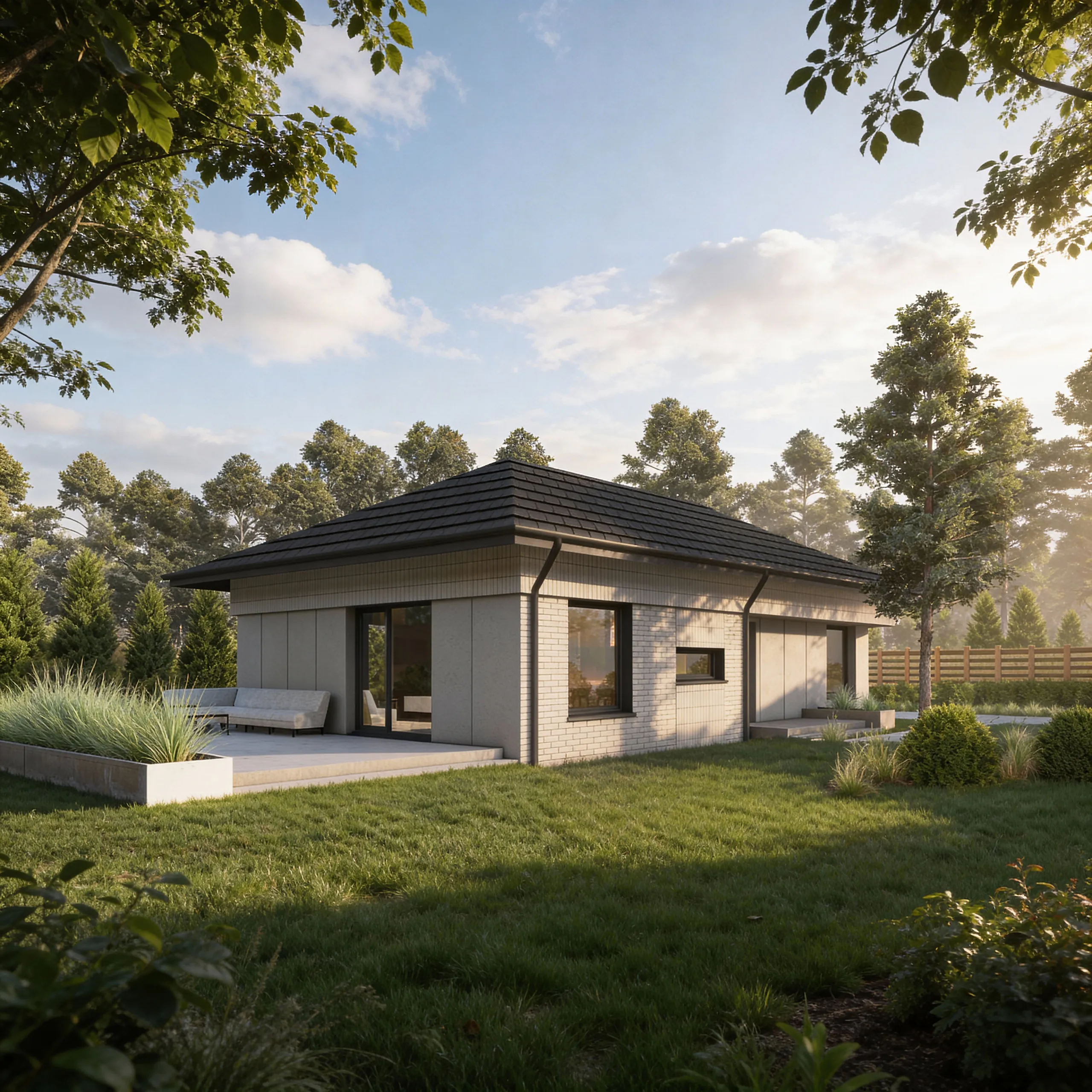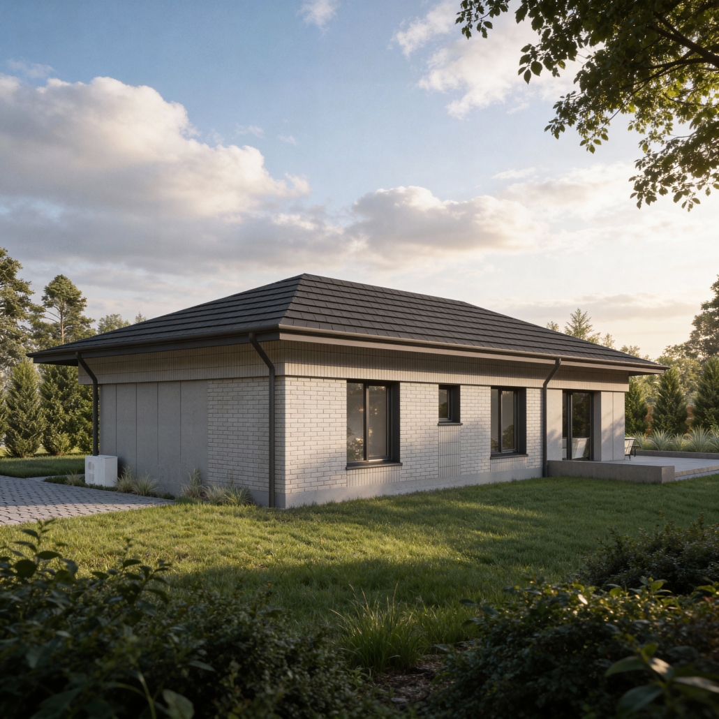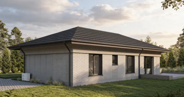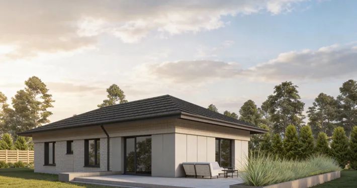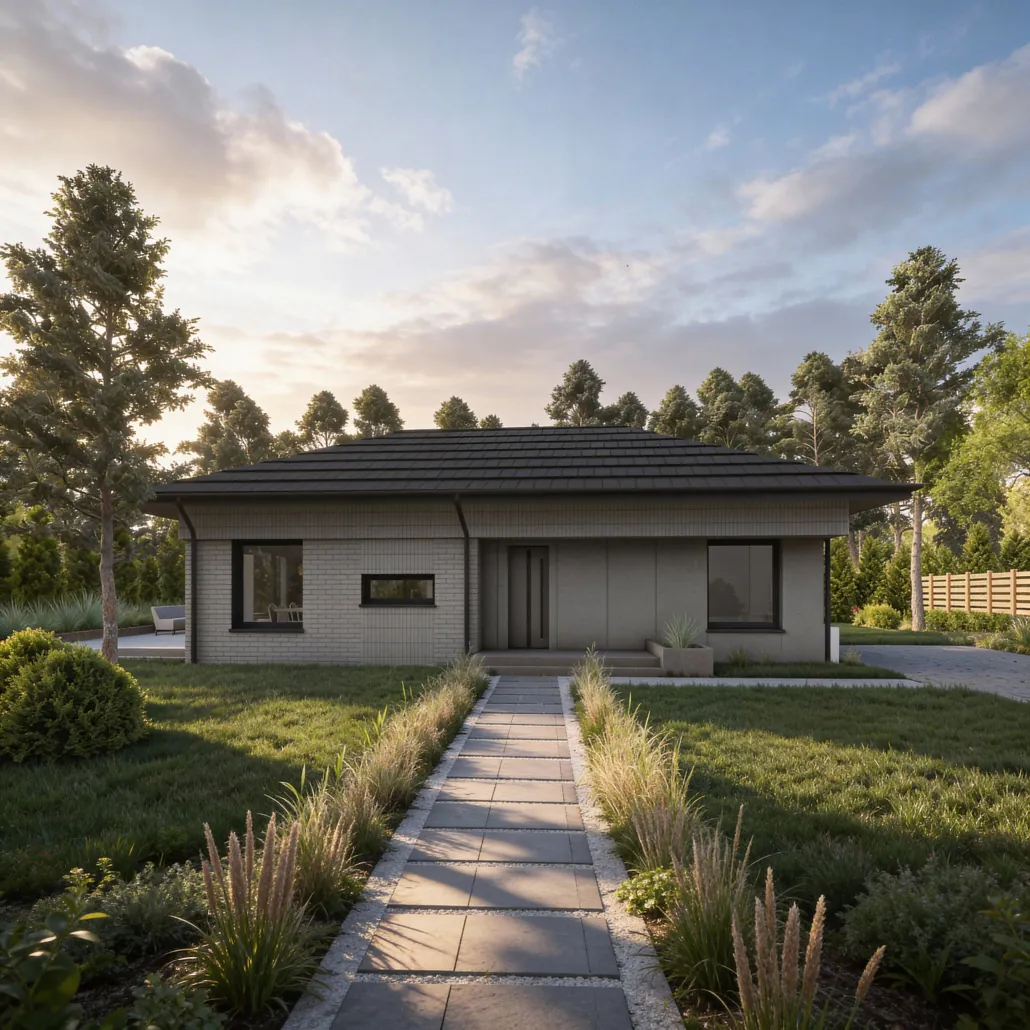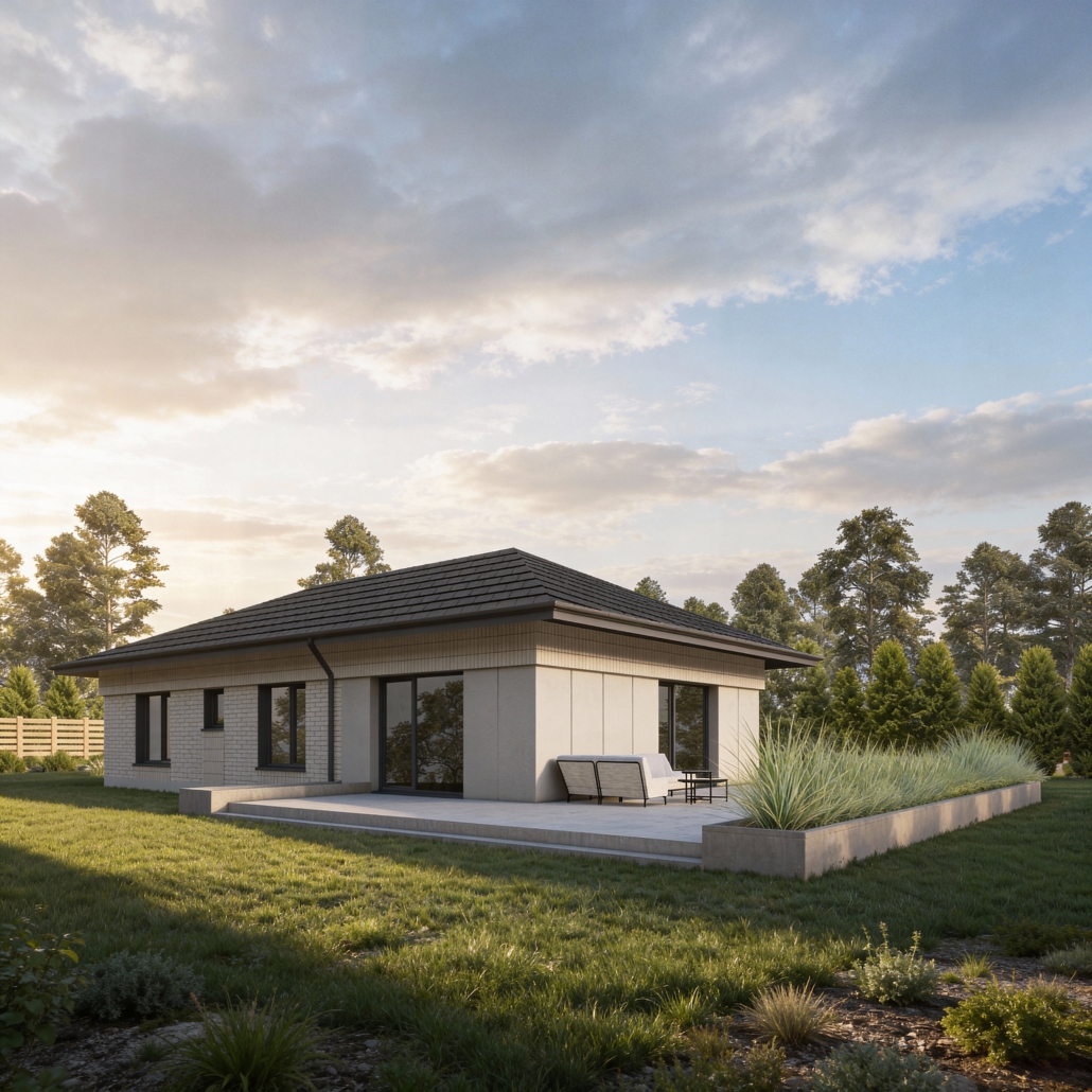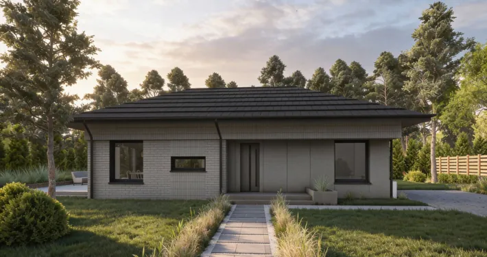 PREF105 to wyjątkowy projekt domu parterowego z eleganckim dachem czterospadowym, który zachwyca harmonią formy i dbałością o każdy detal. To przestrzeń stworzona z myślą o codziennym komforcie – miejscu, gdzie funkcjonalność spotyka się z estetyką, a każdy metr kwadratowy pracuje na wygodę domowników.