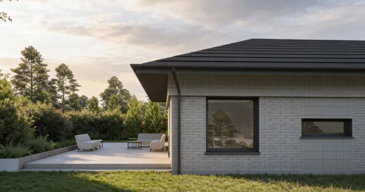 W domu PREF105 montujemy parapety zewnętrzne przy oknach standardowych, czyli takich, które nie sięgają do samej podłogi. W przypadku drzwi balkonowych nie stosujemy parapetów, ponieważ mogłyby utrudniać swobodne wyjście z domu, a ich użytkowanie zwiększa ryzyko uszkodzenia elewacji. Dzięki temu rozwiązaniu zachowujemy zarówno funkcjonalność, jak i trwałość wykończenia budynku.